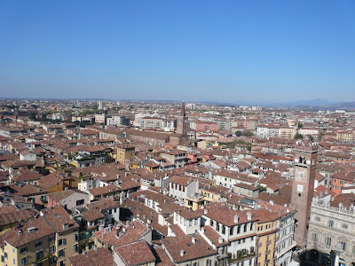 その後、エルベ広場まで歩いてランベルティの塔(鐘楼)に登ります。鐘楼の上からはヴェローナの町が一望できます。街の色が良いですね。