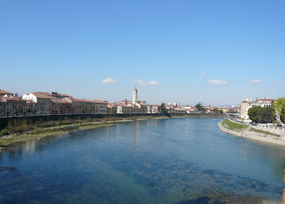 橋からの眺め。ヴェローナの町は統一感があって綺麗です。街全体が世界遺産に指定されているそうです。