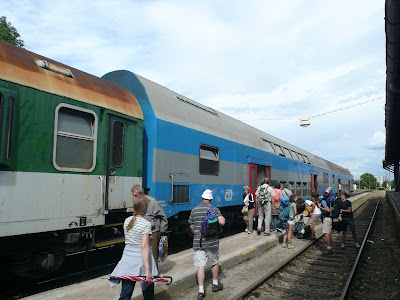 途中の駅の写真。旧共産国にはホームがないらしい。線路を横切るのが基本です。まあ、田舎だから。こういうのんびり旅行大好き。