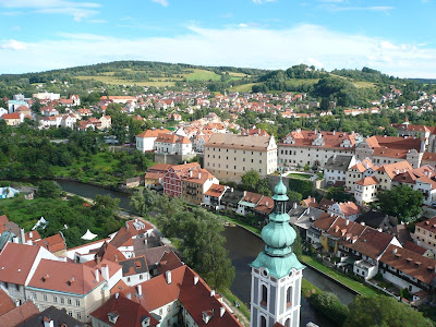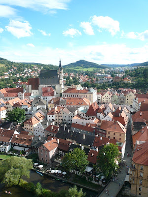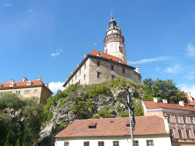 一緒に来た姉ちゃんとは晩御飯を一緒に食べることにしていったん分かれ、ホテルにチェックイン。晩御飯までの時間を利用してチェスキー・クルムロフ城の見学に行きます。下は城の塔