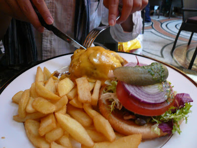 最後の御飯なので、奥さんは有名なフィッシュ・アンド・チップスです。私はスコティッシュ牛のハンバーガー。どちらもポテトが多過ぎる・・・